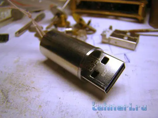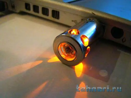Штатный светодиод остался на своем месте, я только повернул его на 90 градусов. Во время активности он изредка помаргивает, освещая ряд мелких отверстий в основании флешки.