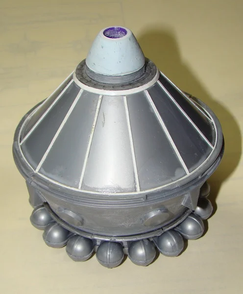 Доведя схематические рисунки КК Восток до М1:24, занялся формированием отсека тормозной двигательной установки.Сняв замеры с чертежа, перенес их на модель. Пришлось несколько укоротить хвостовой конус, вскывшееся отверстие заклеить крышкой и приклеить на нее цилиндрическое кольцо, являющееся основанием для конического кожуха, закрывающего тормозной двигатель. Конический кожух изготовил из отрезка корпуса фломастера и двух колец разного диаметра,вырезанных из листового пластика и наклееных на трубку. Пространство между кольцами заполнил "Эпоксилином", прокатал всю сборку на оси по смоченному стеклу. В результате получил конус с отверстием в центре. После полимеризации "Эпоксилина" произвел окончательную обработку конуса при помощи шуруповерта (в качестве привода) и шкурки. Сопло двигателя изготовил из колпачка от авторучки, вклеив его в кожух двигателя при помощи штифта.После предварительной сборки приборный отсек приобрел более правдоподобный вид, но работу над ним надо проводить еще очень большую.
