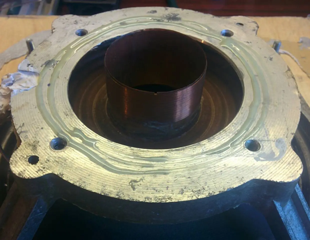 Привет всем самоделкиным. Предлагаю создать общую тему по ремонту динамиков. Вот мой первый пример ремонта. Последний динамик который я делал 30гд аналог 75гдн. Сабвуфер уронили и у него сместился магнит и гибкий вывод отходит. Магнит спокойно откручивается, поэтому расклеивать динамик не пришлось. После снятия магнита почистил его от магнитных соринок, использую ролик для одежды, очень хорошо очищает. Катушка не повреждена. Нанес клей на раму и прикрутил магнит, отцентровал и затянул. Проверил синусом, все в порядке. На фото гибкий вывод временый из китайского провода. Динамик полностью теперь пригоден для дальнейшего использования. Осталось заменить вывод и прикрутить обратно в ящик. Времени на ремонт ушло минут 40. Жду продолжения темы. Спасибо.