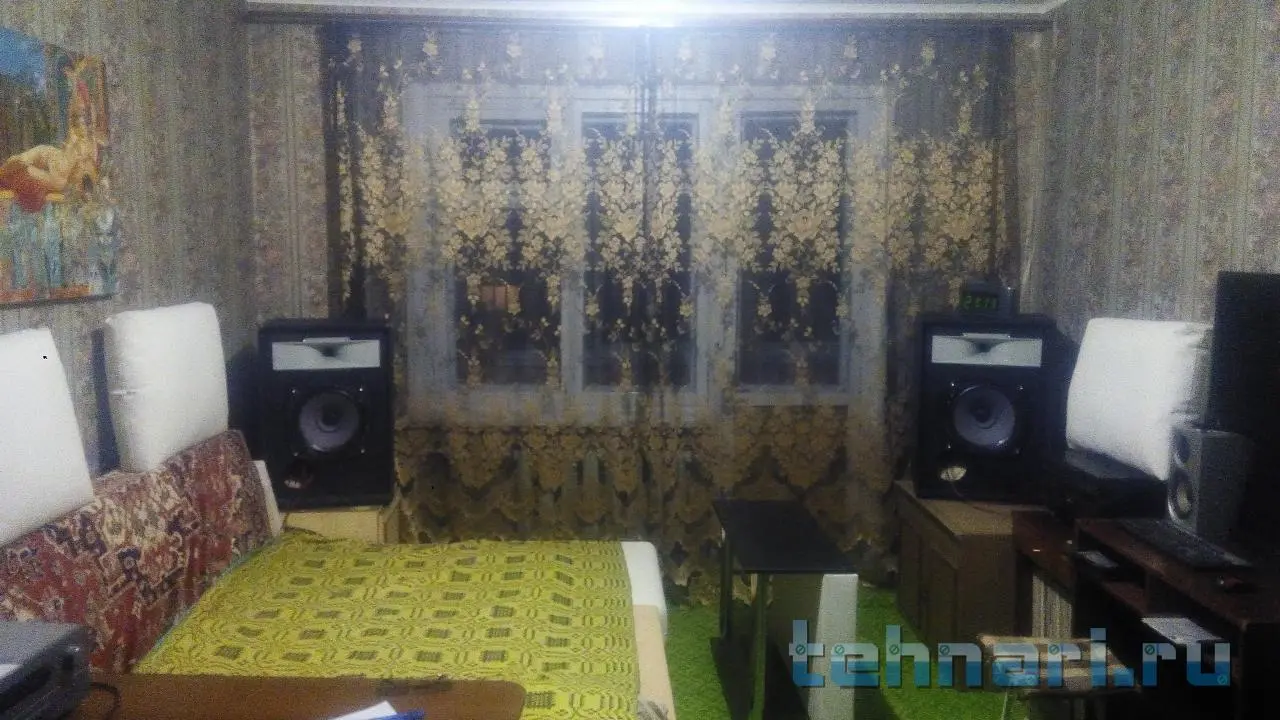 Ага, все ж, вдоль короткой стены разместил, так они все подальше.Колонки уже разместил.