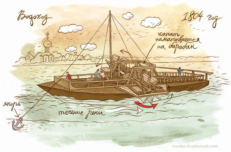 После биографии подробнее остановимся на конструкции водохода Кулибина