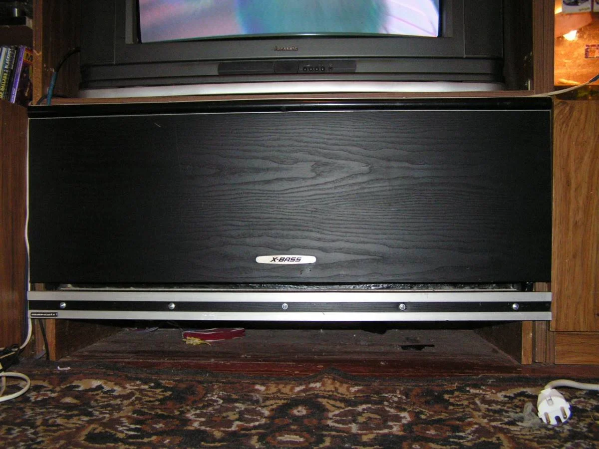 я такую башку ставил в 2001 году в такой щелевой вуфер (до сих пор ещё у кореша играет не плохо)...систему только пришлось экранировать кастрюльку прикрутить к динамику чтобы телик не офигевал от магнитного поля...тогда кинескопы были у всех