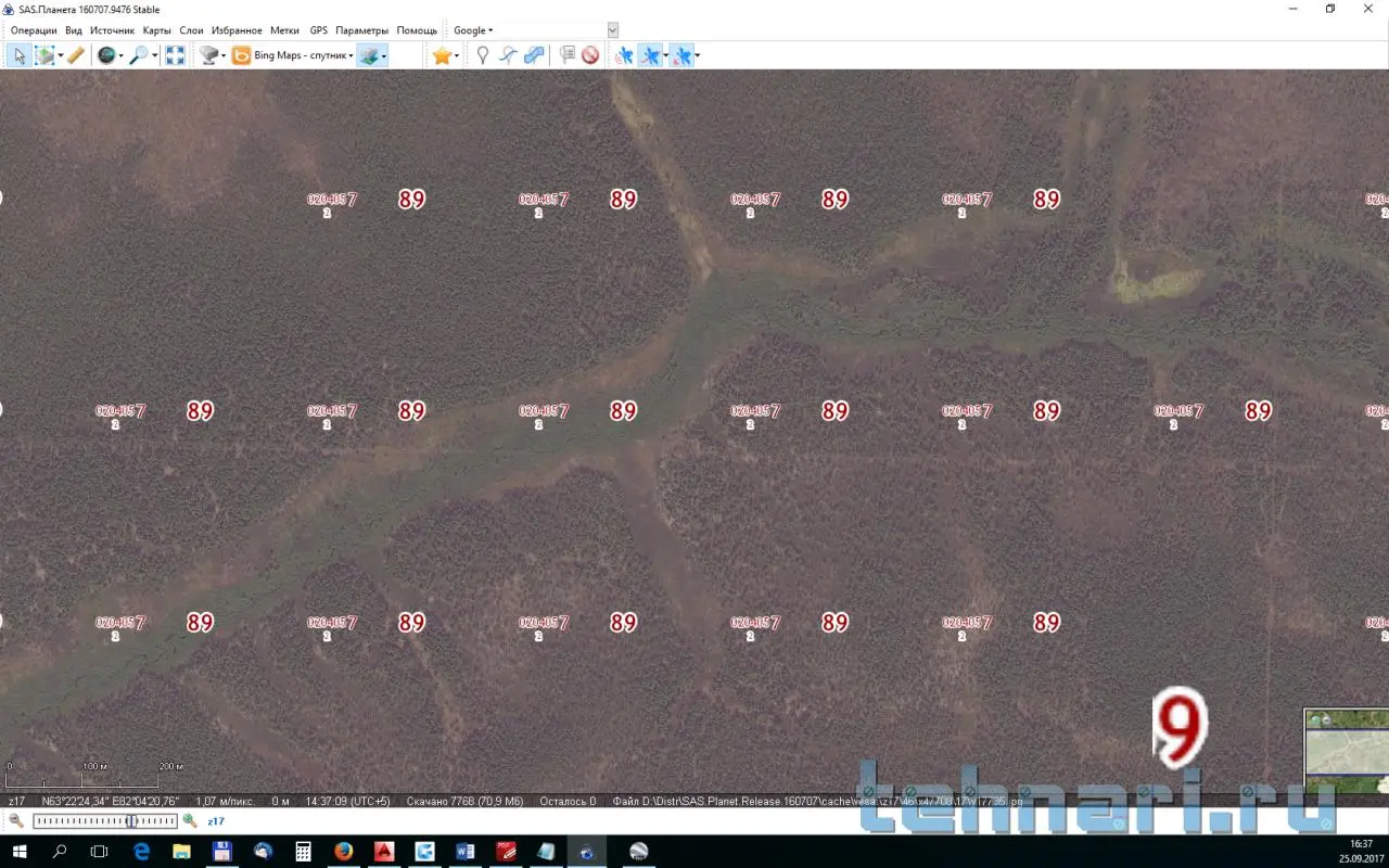 Ну я, будучи скептиком, всё-таки полез в Google Earth — а и вправду есть такая сетка.