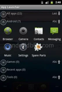 Advanced App Drawer - программа органайзер ваших приложений. Цель работы является создание специальных разделов, групп приложений. ТО есть, вы создаете свою группу приложений например Browsers (браузеры) и отправляете туда все ваши браузеры. Группе присваивается своя иконка, и отправляется ярлыком на рабочий стол. Довольно удобное приложение, не требует времени на изучение, всё просто и понятно.