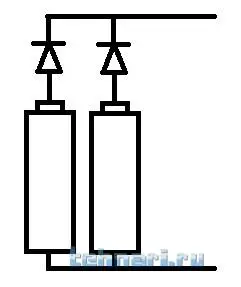 Зарядка- индивидуальная. Диоды предотвращают возникновение уравнительных токов. Они должны быть типа диодов Шоттки, чтобы падение напряжения на каждом было минимальным.