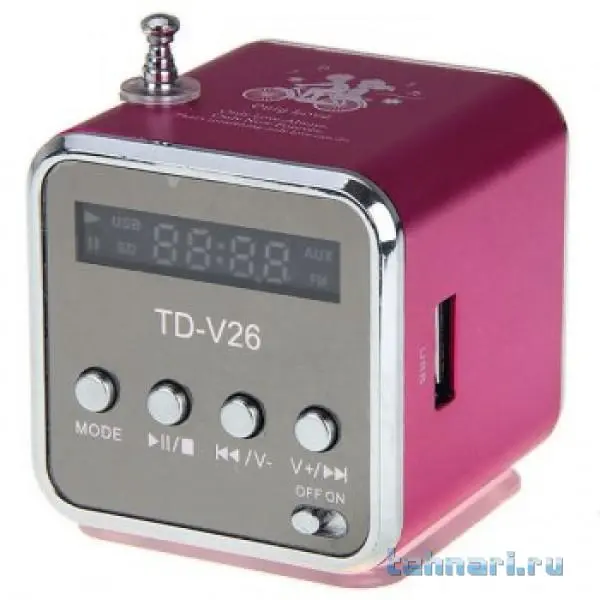 Нашёл у себя интересный аппарат, радио+флешка+звуковой агрегат, китайского происхождения. Название TD-V26. Рабочий. Но с одним недостатком - заряда аккумулятора хватает лишь на 20 минут работы. Даже с отключенной принудительно "цветомузыкой"... tehno015