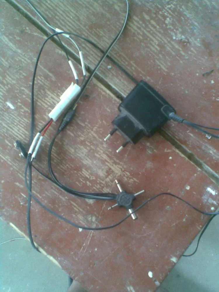 возьми любой зарядник для телефона да отрежь конец, что к телефону вот тебе зярядное устройство