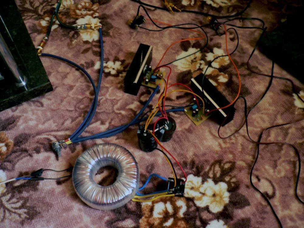 Усилитель готов. Я всё таки остановился на TDA7294, только она обеспечивает отличное качество. Сейчас испытываю, разложил всё на полу и слушаю.