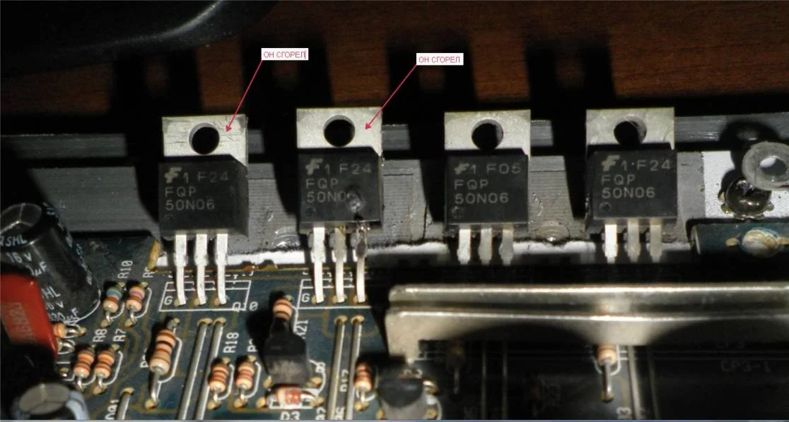 подсоединил плюс к плюсу минус на корпус сгорели эти 2 обведённые красным