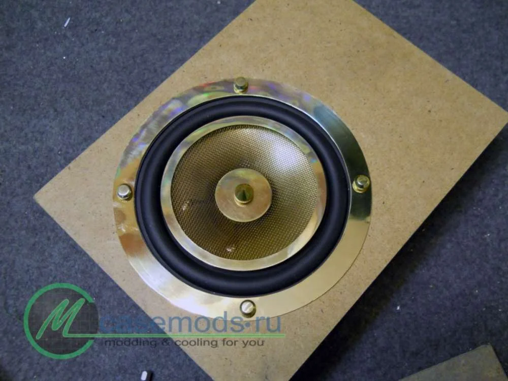 Динамик прикрывает мелкая латунная сетка, для её формовки пришлось изготовить некое подобие штампа.