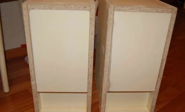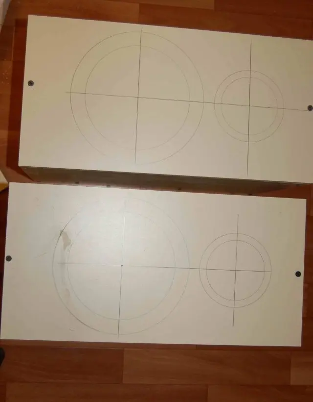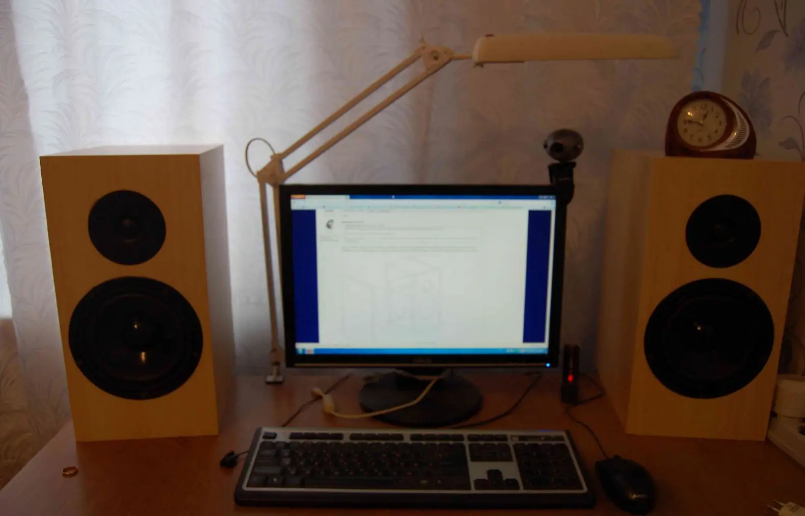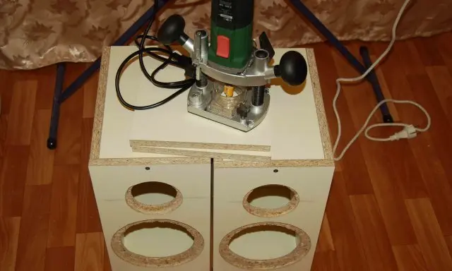 Были напилены из старого шкафа панели по размеру, собраны предварительно на несколько саморезов для точного позиционирования стенок относительно друг друга. После разобрал и стал собирать уже не столярный клей ПВА и стягивал саморезами через каждый 7 сантиметров для надежности. Фрезеровка окружностей сложности не доставила, т.к есть ручной фрезер. Дальше сборка фильтров , шпатлевка , оклейка корпусов и установка динамиков. Выложил ссылку на видео для наглядности их работоспособности, оценивать звук по видео не стоит))
