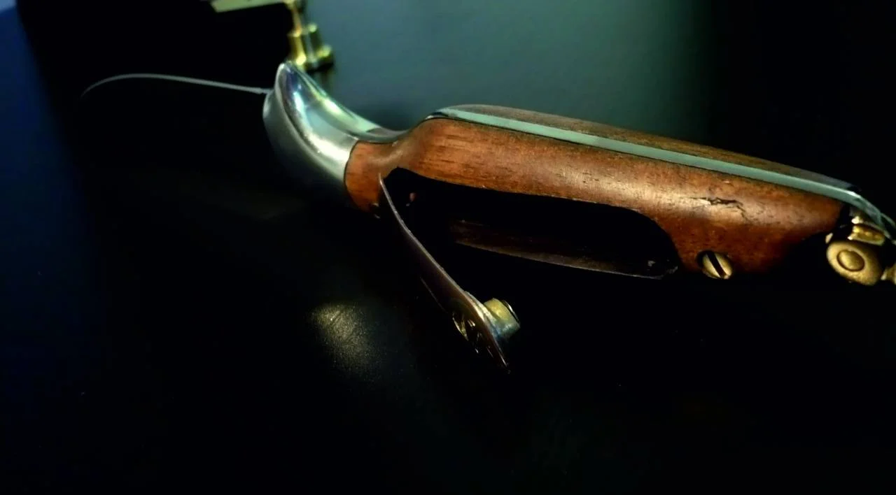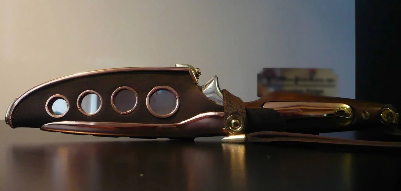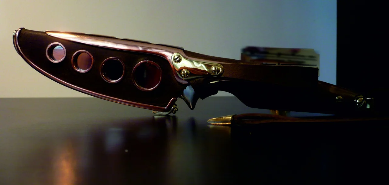 В процессе самым сложным оказалось отчеканить крышку этого отсека чтобы она повторяла форму ручки. Петли сначала сделал классические, но из за сложной формы крышки и паза в ручке не смог их туда монтировать. Пришлось придумывать хитрую моно петлю.