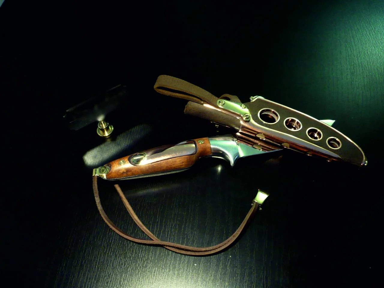 Идеология следующая. В отверстие в ножнах вставляется кончик сигары и вставляя нож он отсекается лезвием как гильотиной. По желанию сигару можно заменить на все что угодно… Палец пытуемого например :-).