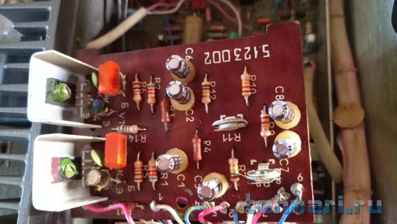 Это маркировка транзистора КТ817Г. Он более мощный, нежели КТ815В, поэтому такая замена корректна.Запах идет от VT4 на плате А5, по схеме , у меня по факту написано 7ГА1.
