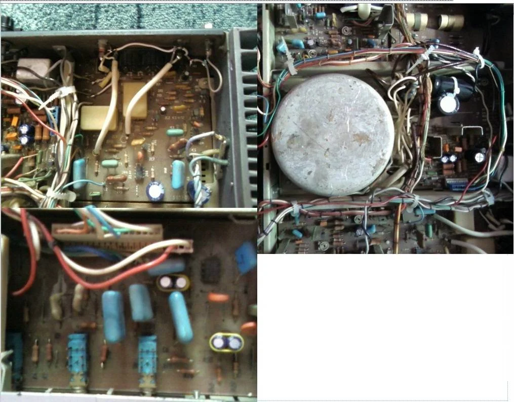 электролитические конденсаторы заменены на новые с бОльшей ёмкостью(вместо 2200мкф везде стоят 4700мкф)в цепи питания,так же замена * мелочевки* в обвязке питания и сигнальных цепях практически всех узлов.В сигнальных цепях установлены неполярные электролитические конденсаторы шунтированы плёночными конденсаторами,все регуляторы в идеальном состоянии(не шуршат не хрипят),выставлены ток покоя и ноль.