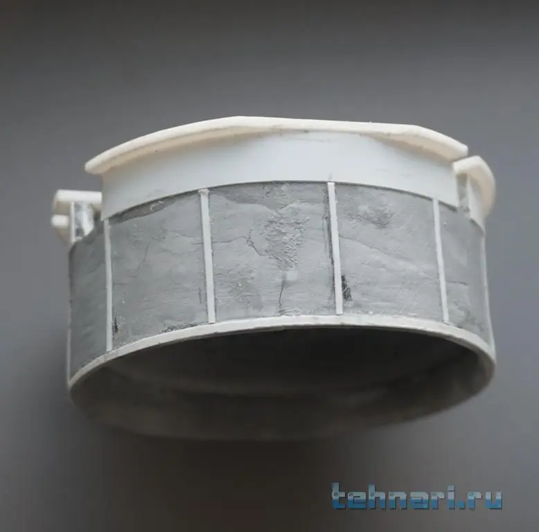 Как видно из рисунков, конструкция станции имеет довольно простой вид, без всяких видимых наворотов. Перегнав в масштаб 1:35 указанные размеры станции, я прочертил ее эскиз и началось действие. Для формования цилиндрического корпуса станции подходящего пузырька-бутылочки не нашлось, поэтому пришлось клеить цилиндр из ленты полистирола толщиной 0,3мм (что оказалось под рукой), используя в качестве болванки банку с питьевой содой. Лента была смазана клеем, плотно намотана на болванку и закреплена малярным скотчем. После часовой просушки в цилиндр был вклеен диск, вырезанный из листового пластика и заготовка на болванке (банке) отправилась на суточную сушку на радиатор батареи отопления.