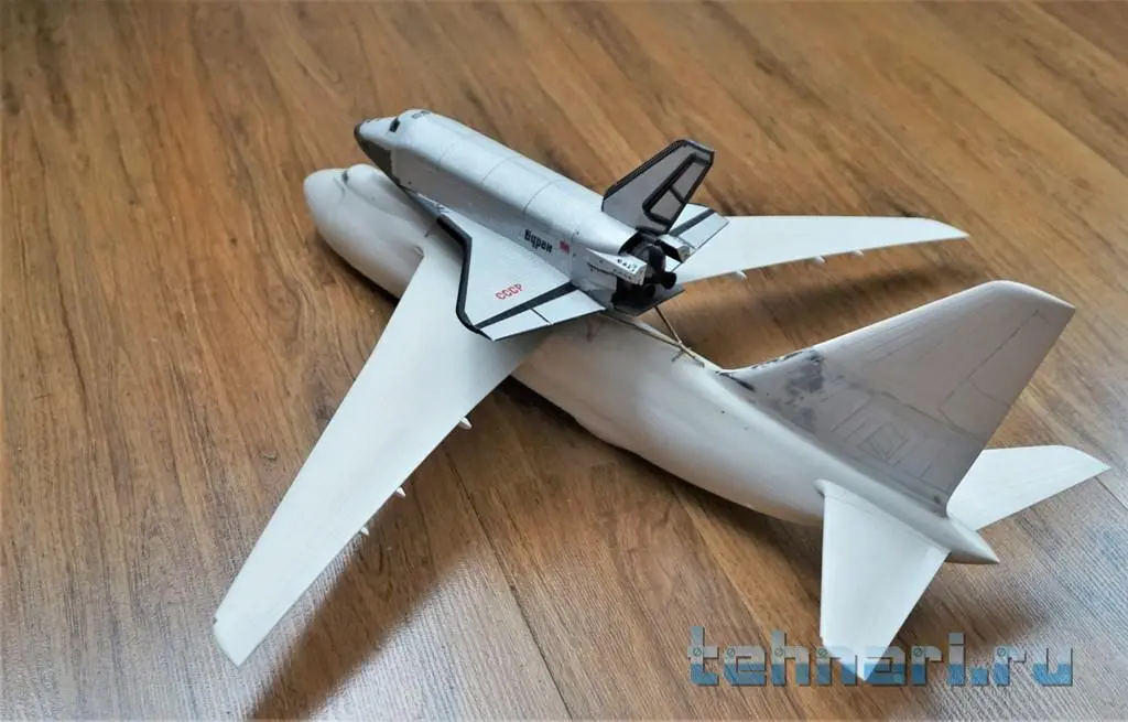 После просушки планера вклеены на штатное место створки грузовой кабины, киль , контейнер тормозного парашюта и сопла ракетных двигателей.