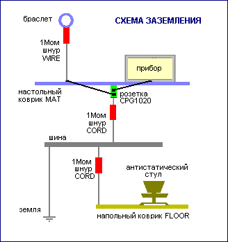 Будьте внимательнее, я не говорил - "заземлять коврик". Я говорил - соединить с браслетом. И всем, что касается чувствительных к статике деталей и изделий. Цель - чтобы всё это имело один и тот же потенциал.