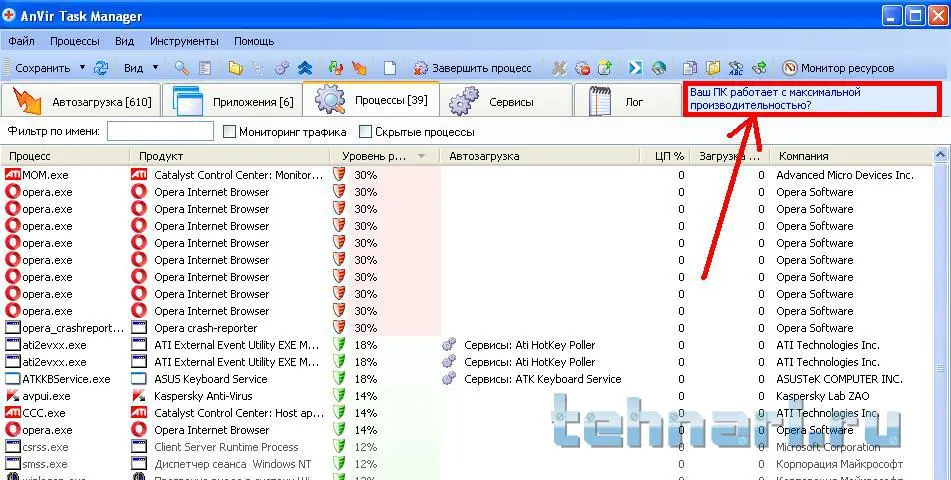 Оф. сайт программы: AnVir Task Manager - процессы, автозагрузка, сервисы, Диспетчер Задач для Windows, процессор, диск, память, сеть