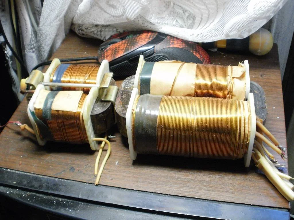 Вот такие две колдобины нашёл в старом стабилизаторе, проволока алюминиевая, даже не знаю что это трансы или дросселя. Знать бы ещё зачем им столько проводов:D