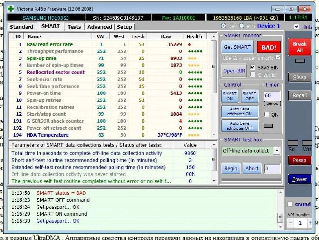 У меня проблемка. После загрузки Windows 7, мне выдаёт критическую ошибку мол "Сохраните даные и замените винчестер". При этом при загрузке проверка винта выдаёт S.M.A.R.T. status BAD. Проверка Викторией показала результат (рисунок прилагается).