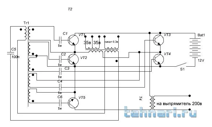 седня доделал свой автогенераторный преобразователь с 12 на 37 и 200 вольт.Схема оказалась очень простая,все заработало с первого раза,сначала собирал на однотактнике потом косой мост ну и уже мост собирал на транзюках кт829 и вот хотелось мне бы знать скока мощности можно снять с этого преобразователя и можно ли тут заменить на более мощные полевые транзюки ирф3205 ато под нагрузкой транзюки греются прилично