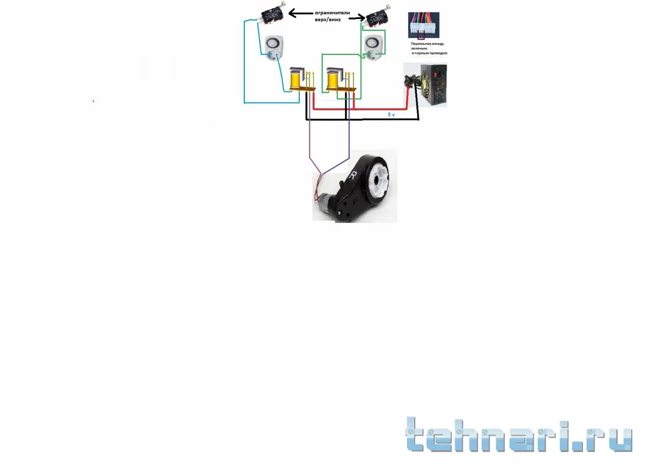 Я внимательно прочитал все советы и удивился как все любят все усложнять. Ну зачем реле многими контактами? Достаточно 2 реле которые имеют один нормально ВКЛ и другой нормально ОТКЛ положение. Ограничители направлений- обычные нормально замкнутые кнопочные микро выключатели вез фиксациий в выключеном положении (микроволновки итд) , через которые идет питание на катушки реле. Дверь что-б не открывалась под внешним воздействием надо сделать по принципу дедовских ящиков- капканов на крыс, где дверца (легкая) закрывается сверху вниз и не наружу или наоборот (принцип гильотины). На нормально ВКЛ контактах подается минус а на разомкнутых (отключеных) подается плюс. Общий идет на контакт моторчика. Вот и все дела.. Но не пойму зачем такой мощный двигатель для такого устройства, У меня по вышеописаному принципу уже 4 года работает солнечный концентратор без проблем. И все это богатство спрятано в корпусе от старого компа на крыше, под ветрами и дождем. Питание таймера 220 вольт от которого идет на блок питания компютера. Ну а сам механизм с редуктором у меня от китайских детских машин-игрушек на 6 вольт, к которому итет питание 5в от блока питания компа. Просто, дешево, надежно (проверено временем).