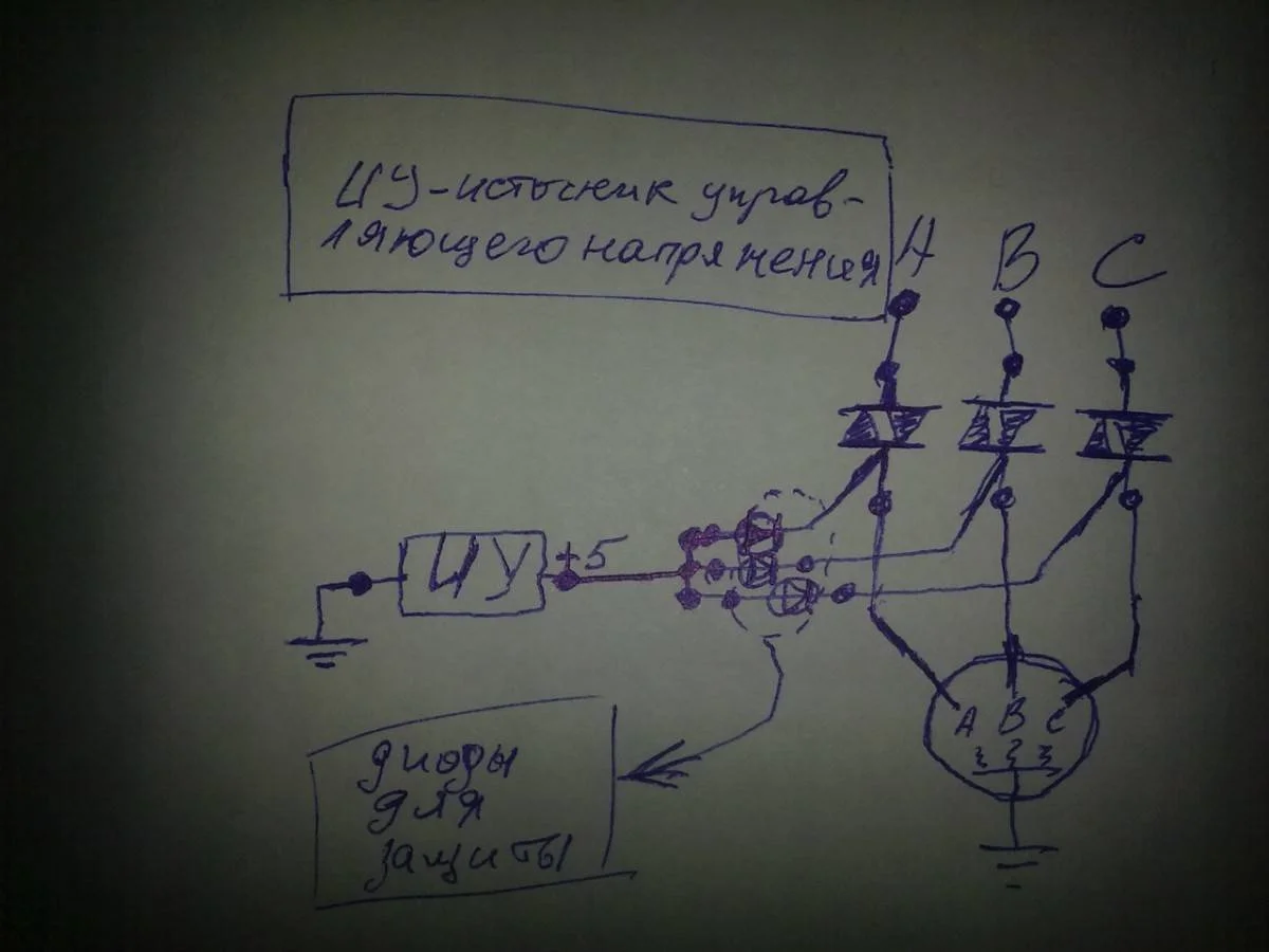 Управлять всем этим будет микрпоконтроллер, который может выдать напряжение для включения до 5В. Если бы речь шла о менее мощных устройствах и 2-вух фазах, то можно было бы просто поставить управляющие транзисторы, но с такими мощными двигателями я ранее не работал (мощность данного движка 2КВт). Подскажите каким образом можно осуществить данную идею..