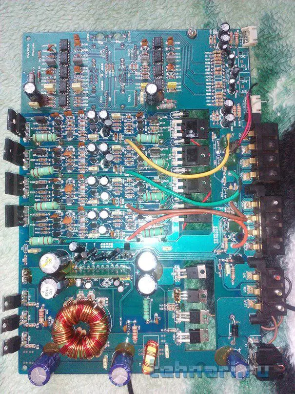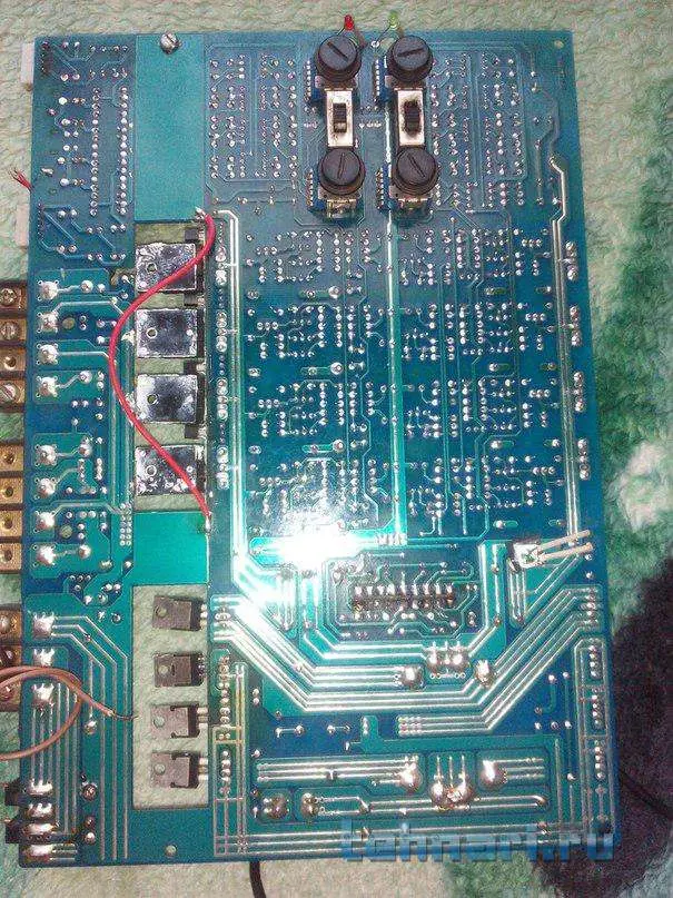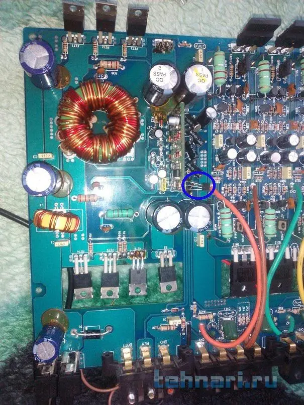 Народ такая проблема всю голову сломал,купил для себе под ремонт усилитель блакпункт модель сказать не могу(фото платы только есть) прежний хозяин сказал коротнуло проводку в машине и усилитель погаз,купил его за 400р открыл и сразу уведел сгоревшую дорожку(за место неё красный провод)усилитель дал признаки жизни,красная лампочка загорелась и теперь начились проблемы,красная лампочка загорается и через 1 секунду тухнет и все,напряжение есть на конденсаторах в первичной цепи,перепаял микросхему tl494 и транзистор(отмечен красным) на него приходит сигнал с REM на 12 ноге микросхемы напряжения нет,куда копать дальше? а и ещё поменял один из ключей был лопнут irfx46n стоит ли менять все ключи?