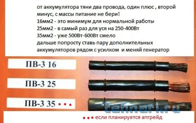 По этому то, что шнурок 10мм2 спокойно будет жить с током 100А - вопросов нет, но то что этот шнурок с длиной 10м уже даст падение напряжения под этими 100А больше, чем шнурок сечением 25мм2 - неоспоримый факт. Хотя оба провода не сгорят и не оплавятся, а напряжение на клеммах аккумулятора и на клеммах усилителя, под нагрузкой, - будет отличаться.