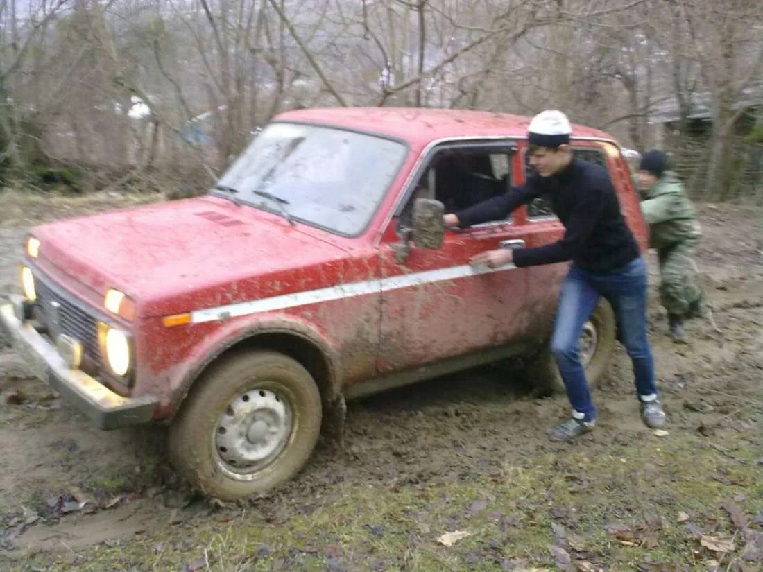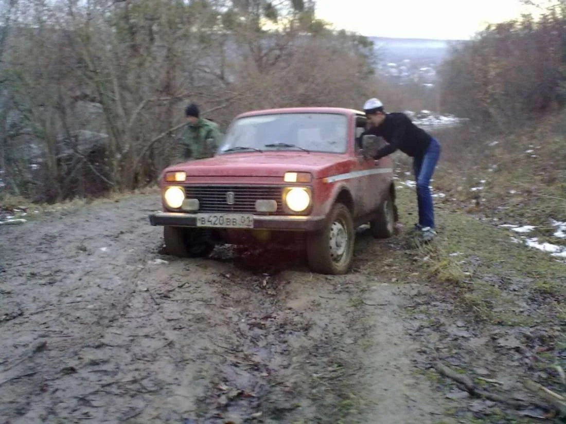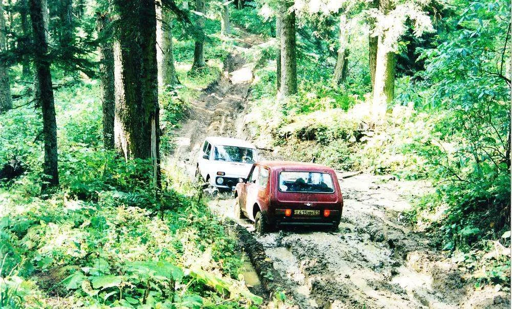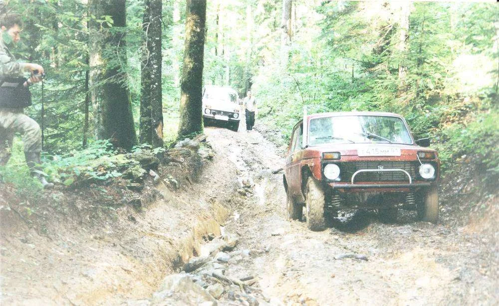 Машины стандартные, единственно, что у красной нивы кузов немного урезан. Машины везде выбирались своим ходом, (лебедок не было). Единственный раз это брали белую ниву на буксир на 5й фото.
