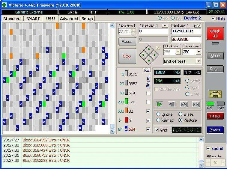 12000 :tehnari_ru_211: тут мало что поможет, тем более если учитывать, что это скорее всего физические повреждения. Иными словами говоря - винту капец. Можно просто не разделять эту область на диск и пользоваться остальным доступным пространством. Если битых секторов до 10-20, регенератором пользоваться смело, т.к. это будут программные битые сектора. У меня ни винте 4 секции в самом начале винта восстановленны, почти год работает, ОС на нем стоит и все ОК. В целом, согласен с Steampunk, прога далеко не совершенна.