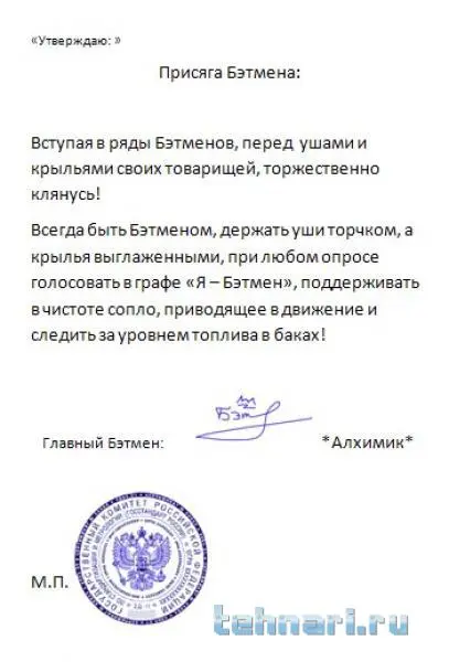 Вступая в ряды Бэтменов, перед ушами и крыльями своих товарищей, торжественно клянусь!Майк, торжественно, с чувством, с толком, с расстановкой!