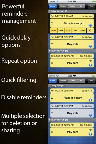 Beep Me – приложение, основной функцией которого является установка списков дел и ежедневных напоминаний, сочетающее в себе одновременно интуитивно понятный интерфейс и богатый функционал. Вам необходимо установить напоминание? «Beep Me» сделает это легко и просто. Не стоит тратить свое время на установку будильника в часах, добавление событий в календарь – с помощью приложения «Beep Me» вы сможете это сделать всего в два шага.