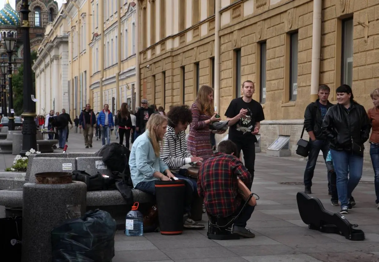 Сегодня гулял по Невскому, рядом народ туристов гостей города развлекает.