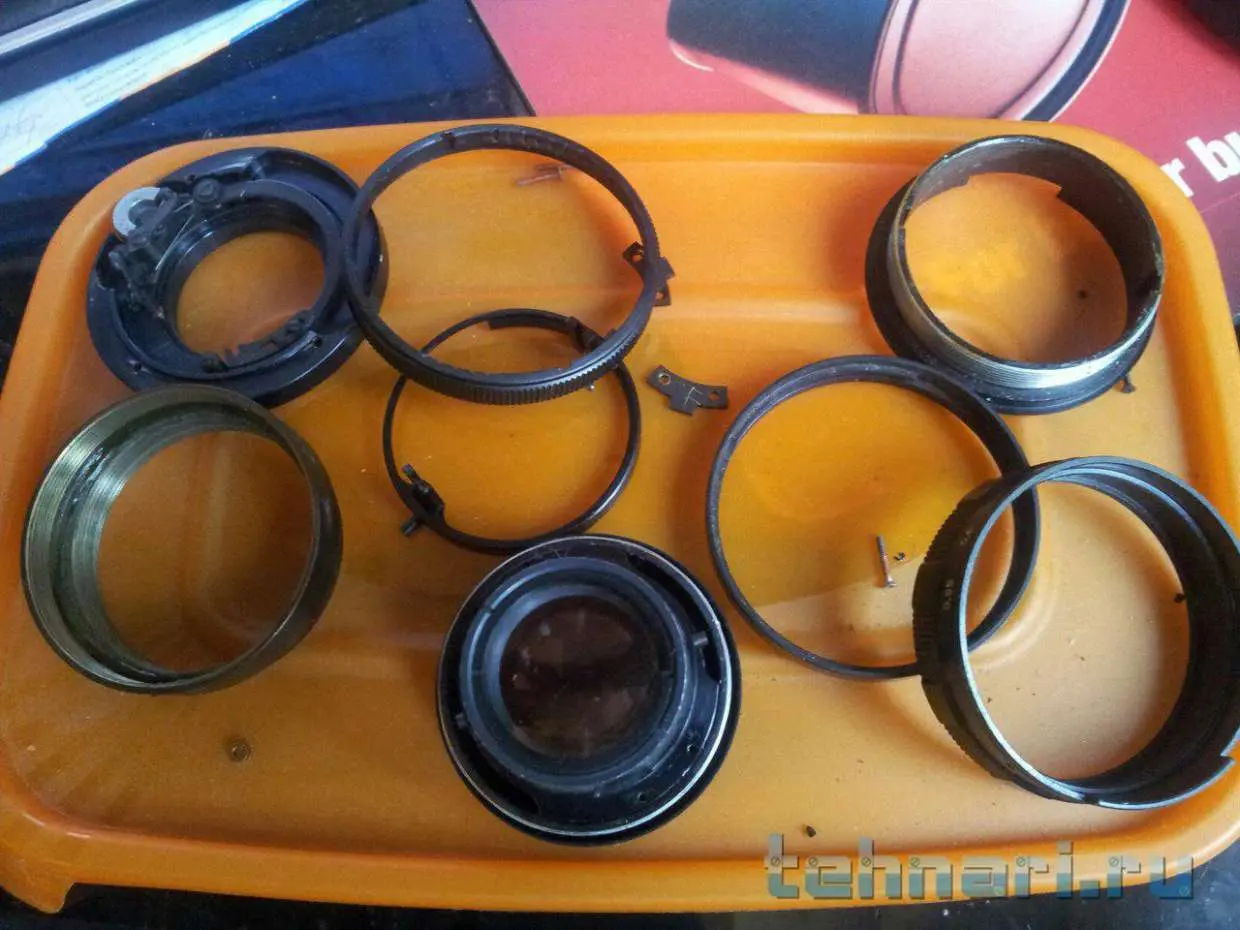 Итак, объектив на столе. Разбираем, снизу, с кольца М42, там 4 винтика, все открутить, далее все снять и открутить следующие винтики(Все которые увидите), линзы не трогаем! На корпусе объектива на кольцах есть микровинтики, их тоже откручиваем.