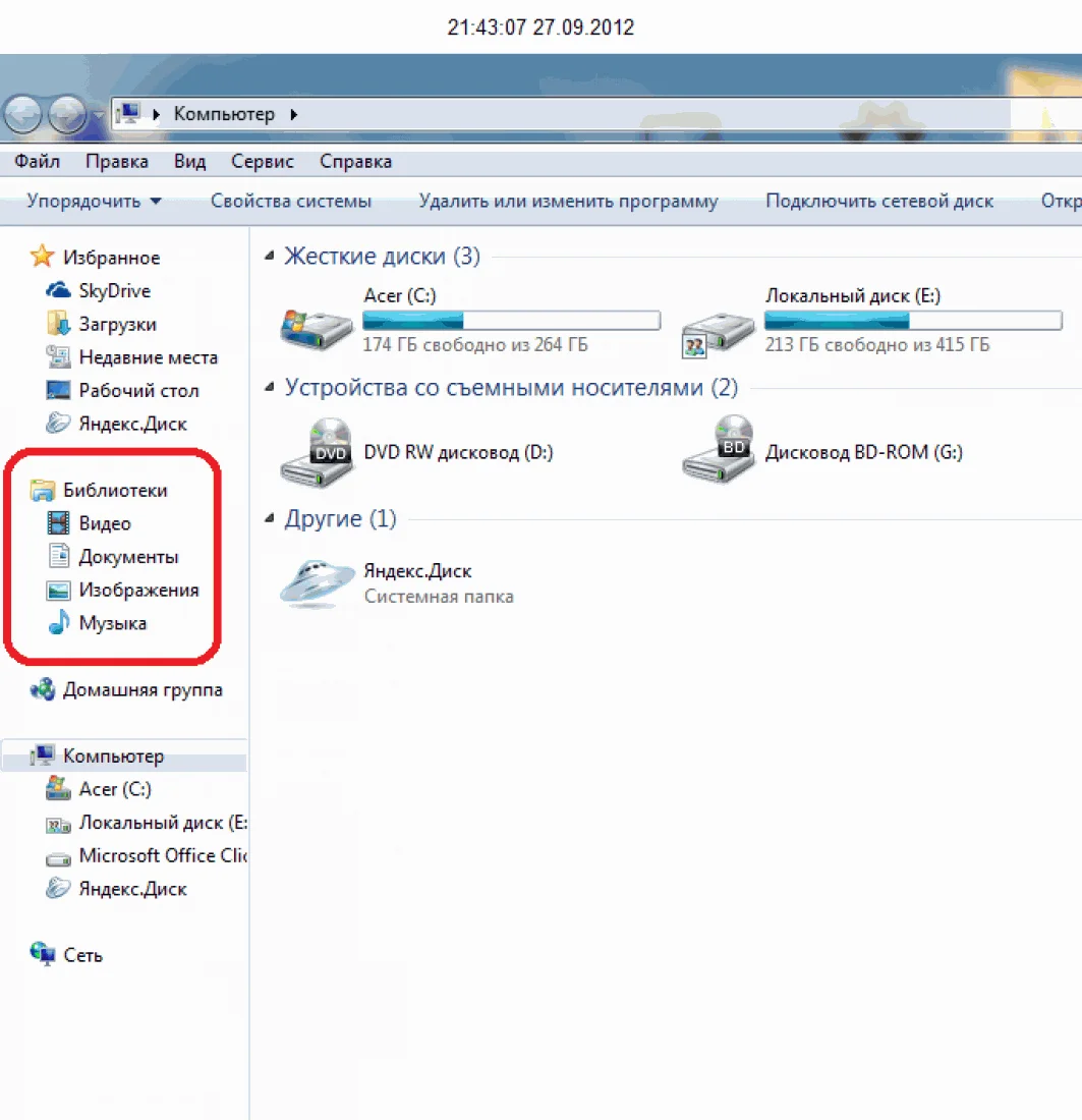В проводнике есть пункт "Библиотеки", но он пуст и добавить ничего не получается (скрин). Переустанавливалась винда, но пока разбирался с интернетом не обратил внимания была эта проблема изначально или появилась позднее. Как быть? win7 библио.webp