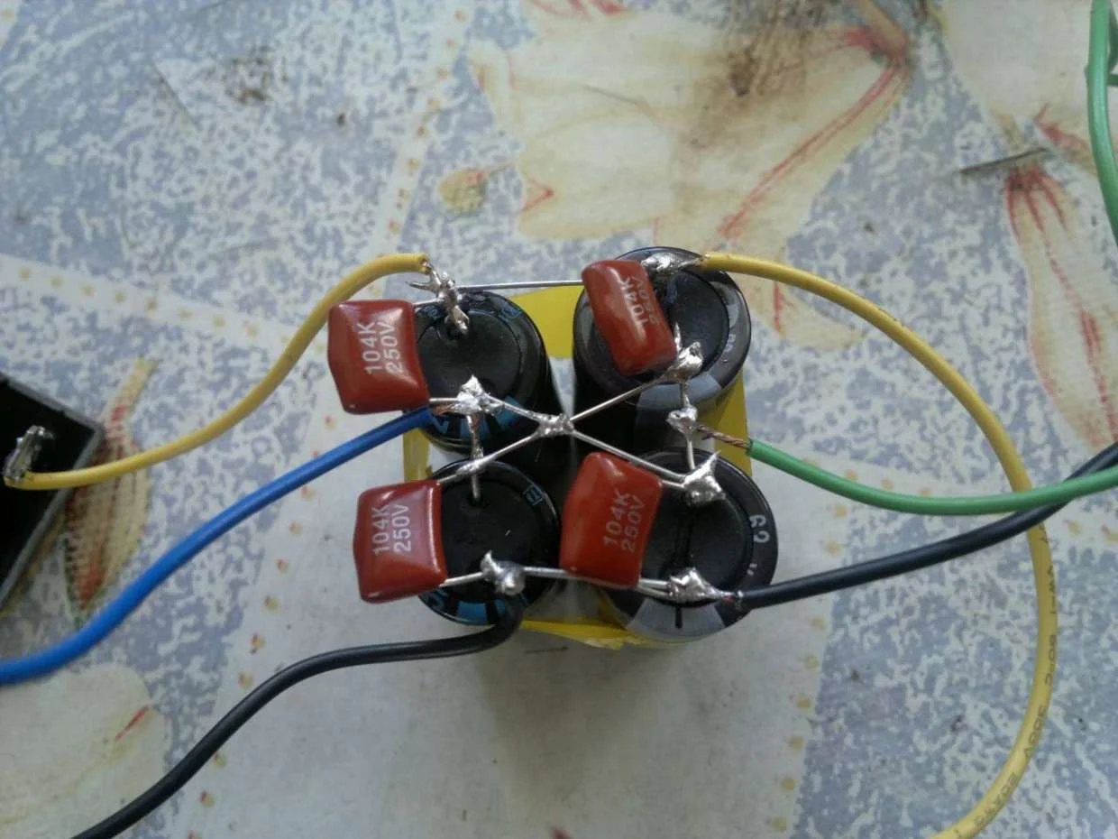 Провода нужно свить в нетугие косички и крайне желательно минимизировать длины провода от транса и моста до конденсаторов.