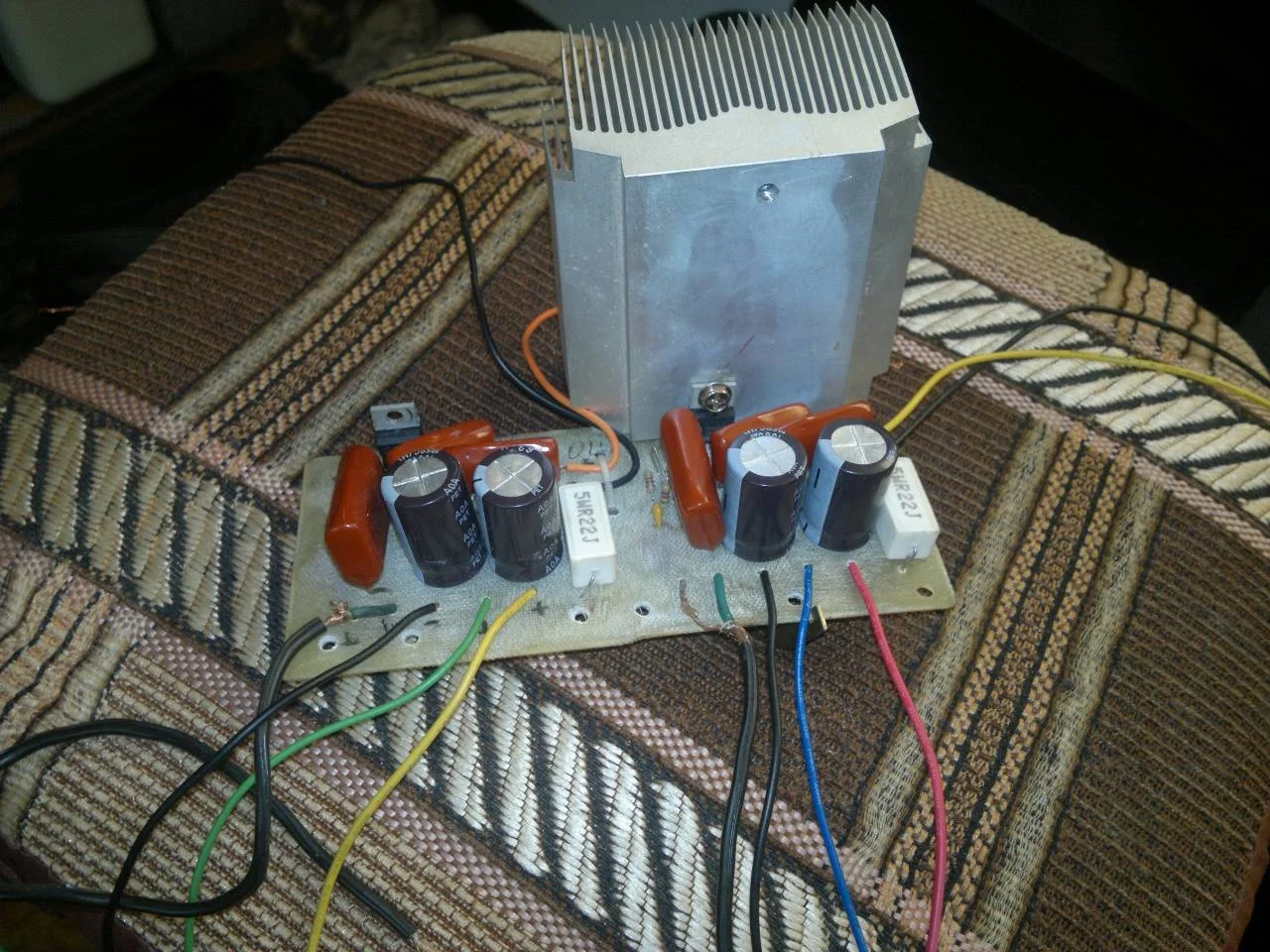 Собрал я значит второй канал, первый послушал, отлично работает, ну думаю сейчас и второй запоет. Собирал, собирал и тут вдруг понимаю что МС которая имеется в наличии какая то странная, ну делать нечего, другой нет, думаю авось пронесет поставлю, и поставил ее. Подключит БП звук появился, думаю МС странная нужно бы поддать "газку" чуть я только громкость прибавил так и стало все понятно.. только на воняла "гадость" завтра поеду за нормальной.