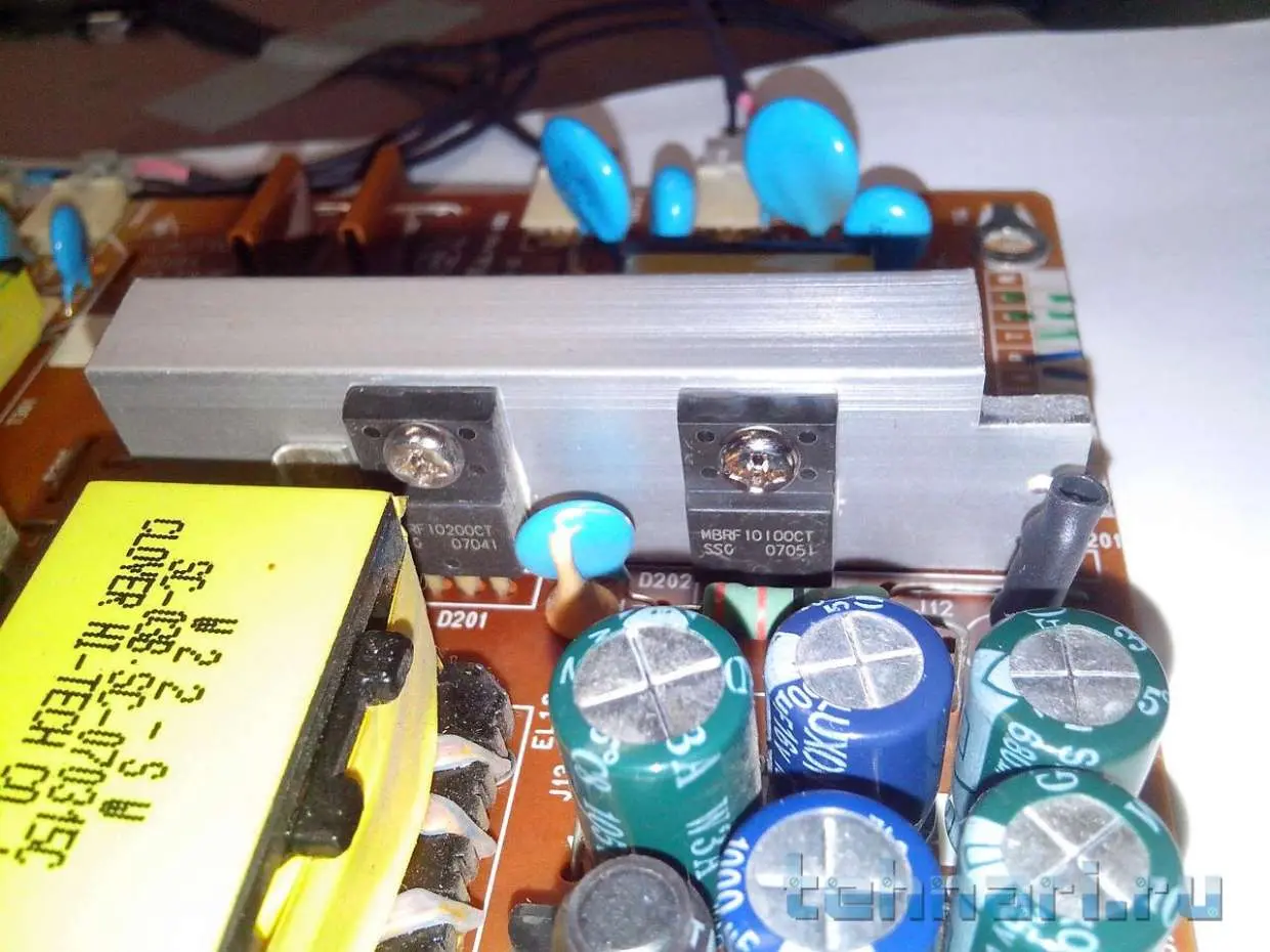всем привет) была проблема с монитором LG 201wt долго не включался, разобрал осмотрел заменил вздутые конденсаторы, всё в норме включается, но только вот греется многовато это так и должно или тут что то не так? в особенности горячо греется радиатор с 2 транзисторами и какие то перемычки-пластины не понятные? может что где посмотреть?