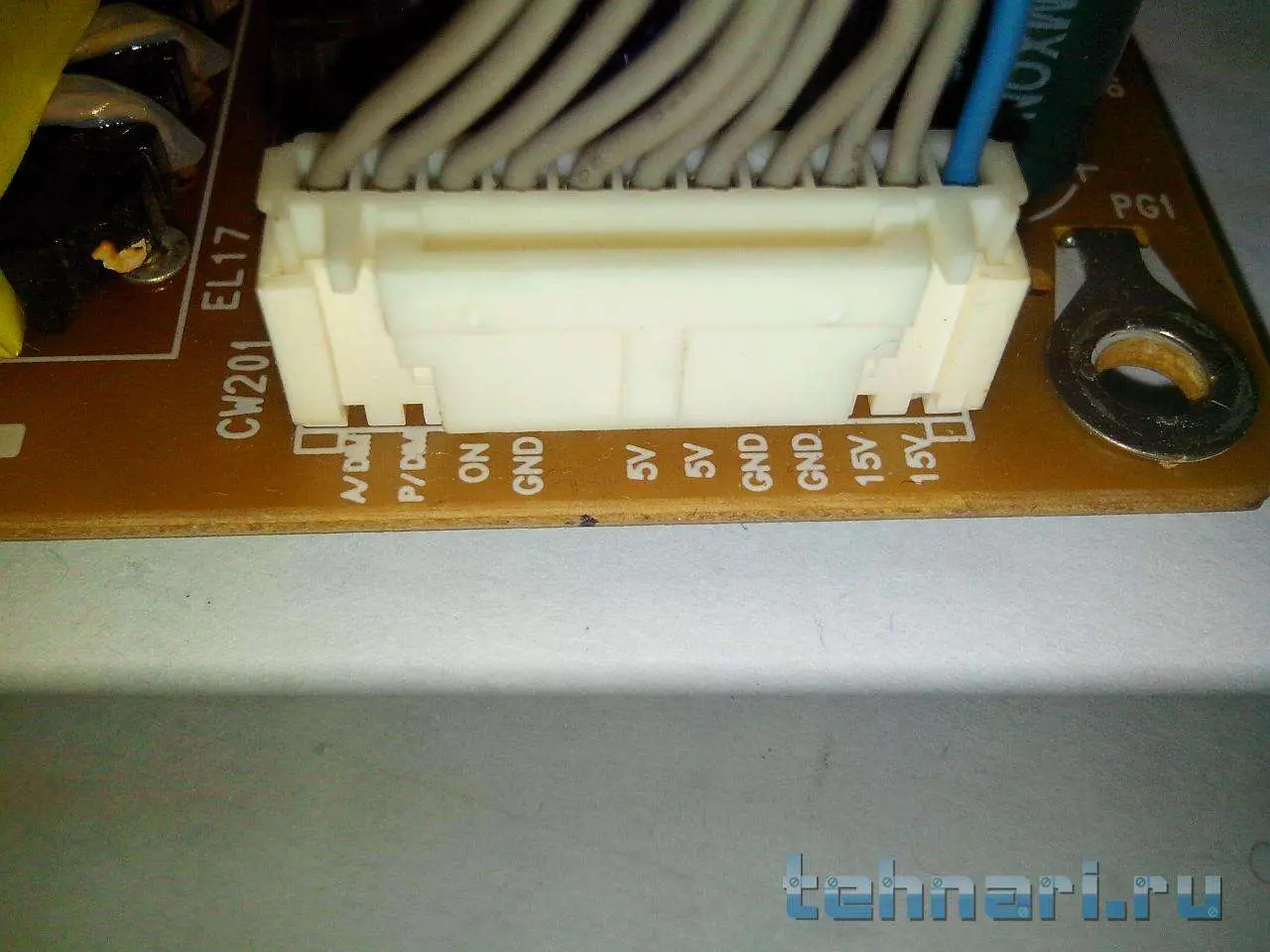 Проверь напряжения источника питания, схема думаю поможет, по фото похоже на шасси LM57B.