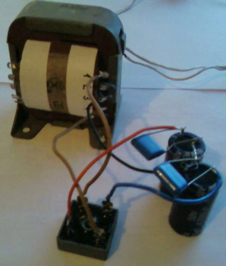 с 15в переменки получаем 20в постоянки,если замерять между *+* и *-* то получем 40в,а если между *общим* и *+* то 20в