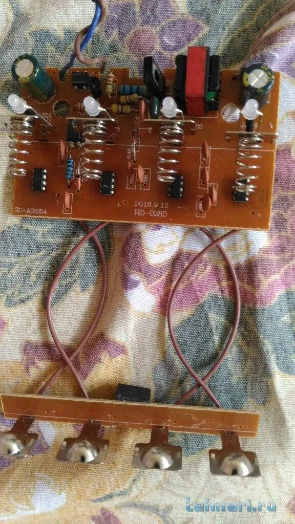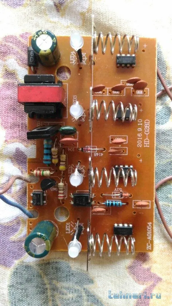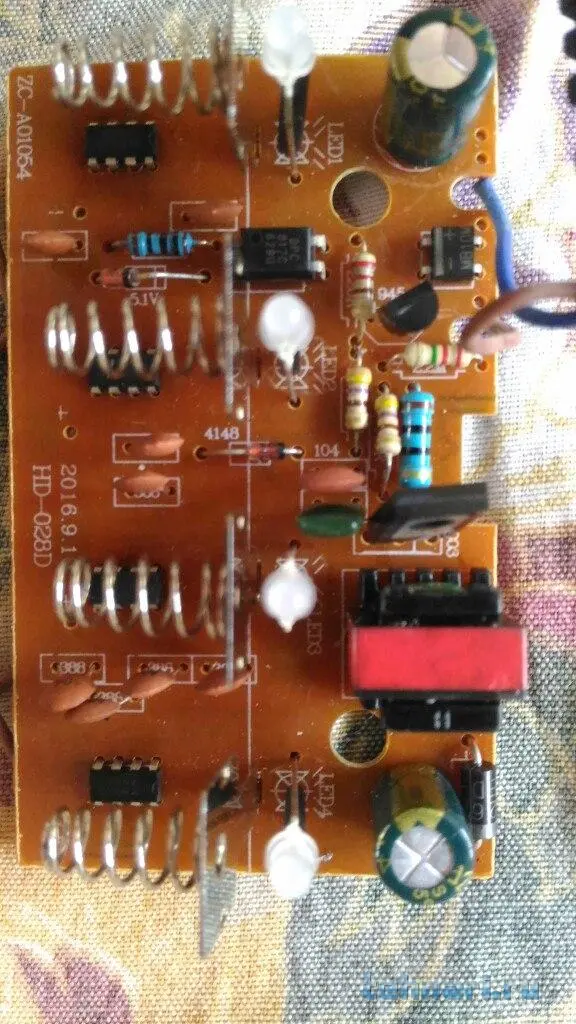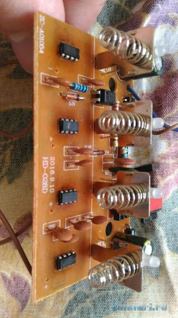 Ещё бы с обратной стороны. Что написано на 8-ногих микросхемах под пружинами и какой транзистор стоит возле трансформатора?