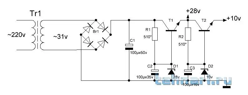 Уважаемые Знатоки! Понадобился стабилизированный блок питания на два напряжения 28 вольт(+- 1 вольт) 120 мА. и 10 вольт(+- 0,5 вольт)200 мА. Если не трудно нарисуйте, пожалуйста, схему (желательно подробно) Заранее спасибо.