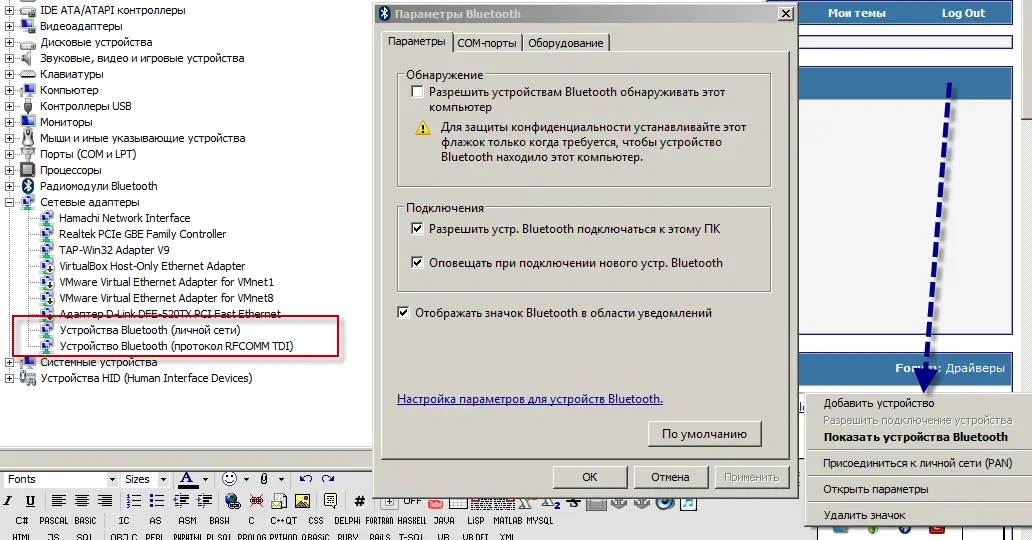 Устройство Bluetooth (протокол RFCOMM TDI)