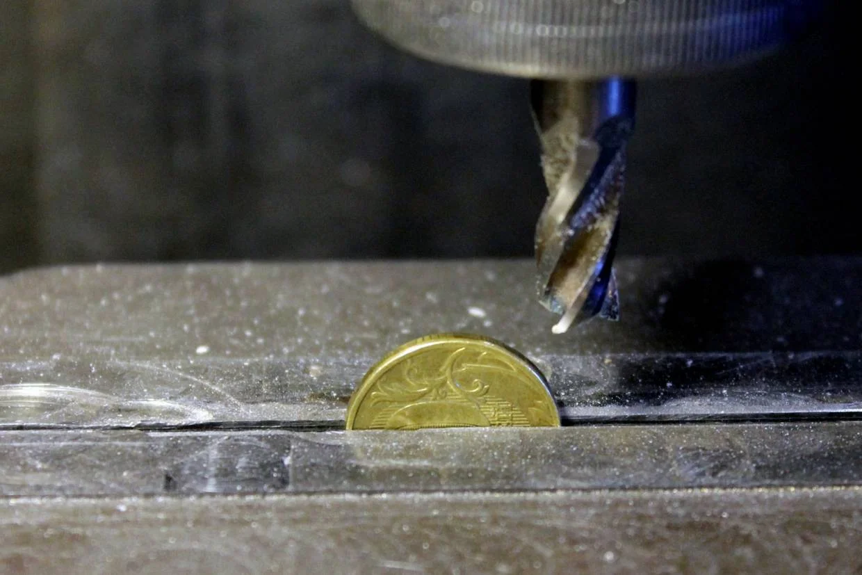 Необходимо притупить острые кромки надфилем. При отсутствии фрезерного станка спилить край напильником. Теперь проведём полевые испытания прототипа. Вставляем монету в приёмник срезом к себе и...