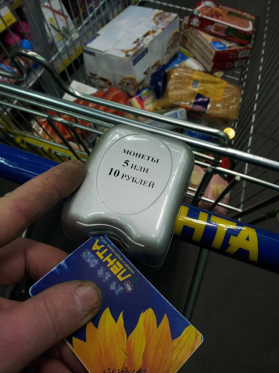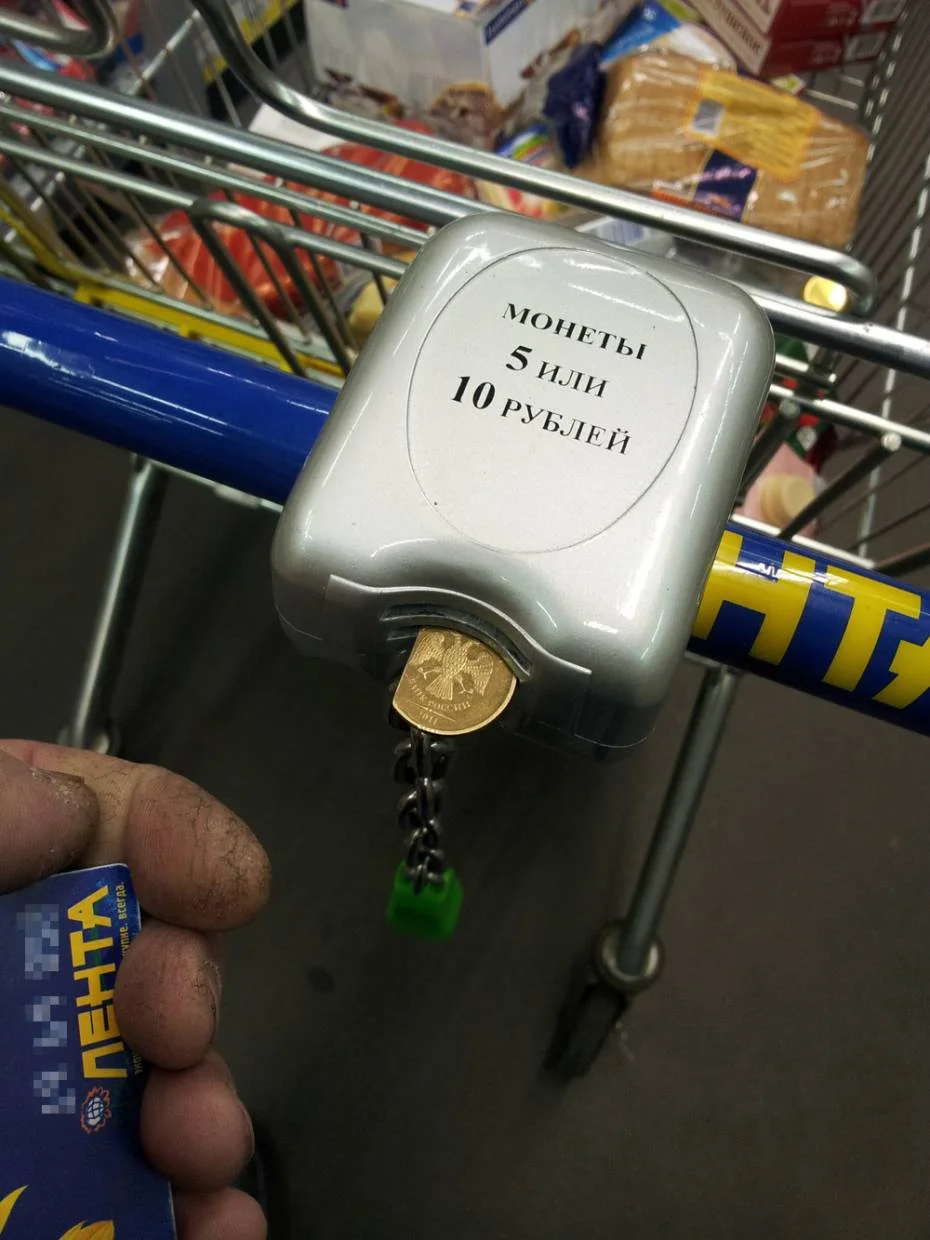 Спасибо. Вот - в размышлении. Дело в том, что для меня тут неудобство не в том, чтобы вернуть тележку на место, а в том, что не всегда в наличии подходящая монетка. Поэтому может быть сооружу что-нибудь типа брелка: кружок с ручкой. Чтобы и не потратить, и был всегда при себе.Нужно такое приспособление? Обращайся!