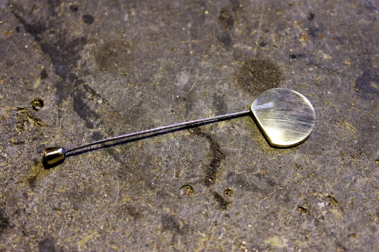 Делаю рабочую модель из латуни, срезаю два с половиной миллиметра, в одном углу прорезаю паз и впаиваю в него миллиметровый стальной тросик. Он предназначен для проворота и извлечения "неразменной десятки".