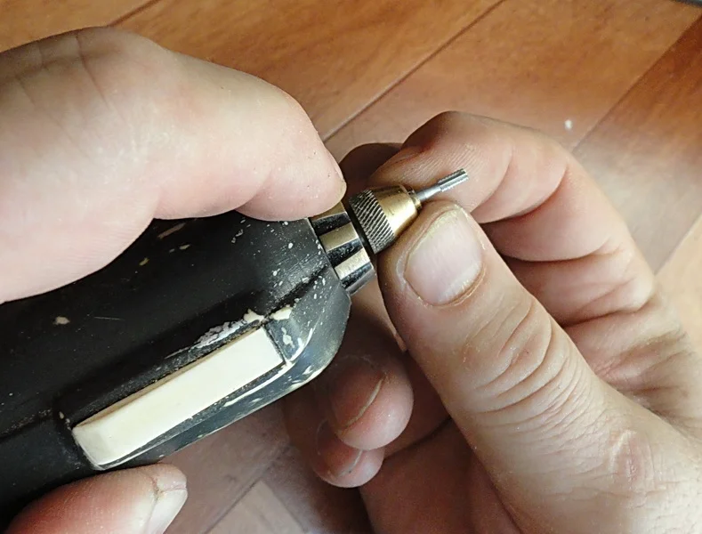 Artem2210, тут есть два варианта - или как тебе уже и сказали, купить цанговый патрон (стоит рублей 100-200), или же купить отдельно гибкий вал для гравюра (стоить будет рублей 200). Его хвостик зажимается в патроне дрели, а та в свою очередь прижимается к верстаку.