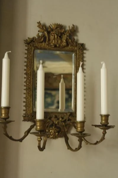 Фото 2. Твои лампы вместо свечей. Или состарить часть зеркала до полу-прозначности и спрятать лампы за него, подсвечники, естественно,убрать.
